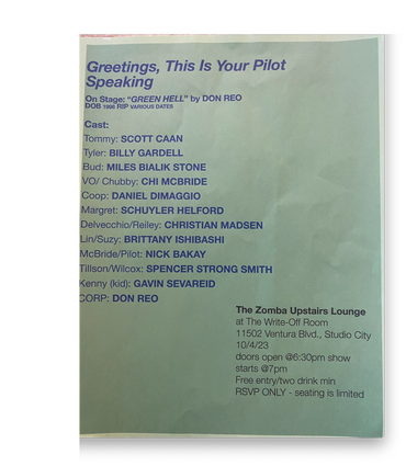 DEAD PILOT ON STAGE: "GREEN HELL" BY DON REO. HALF HOUR, DRAMA. THIS IS A VERY EXCITING EVENT! OUR FIRST DRAMA! A SCRIPT KNOWN IN MANY CI...
