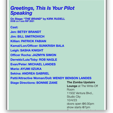Greetings, This Is Your Pilot Speaking is a night for fun, for free (other than a two drink minimum) and to remind ourselves why we write.